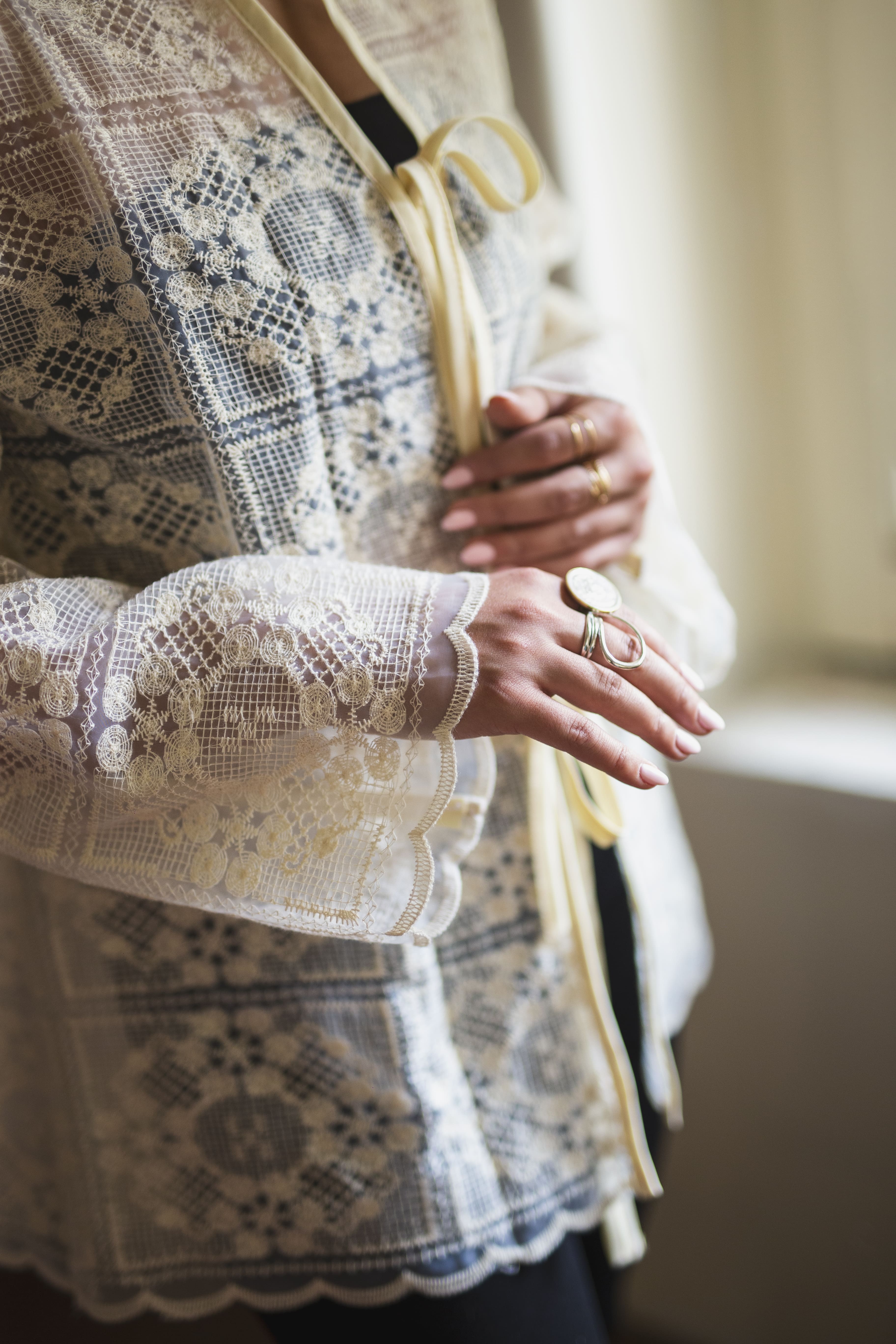 شومیز گیپور سفید آستین کلوش آیریا