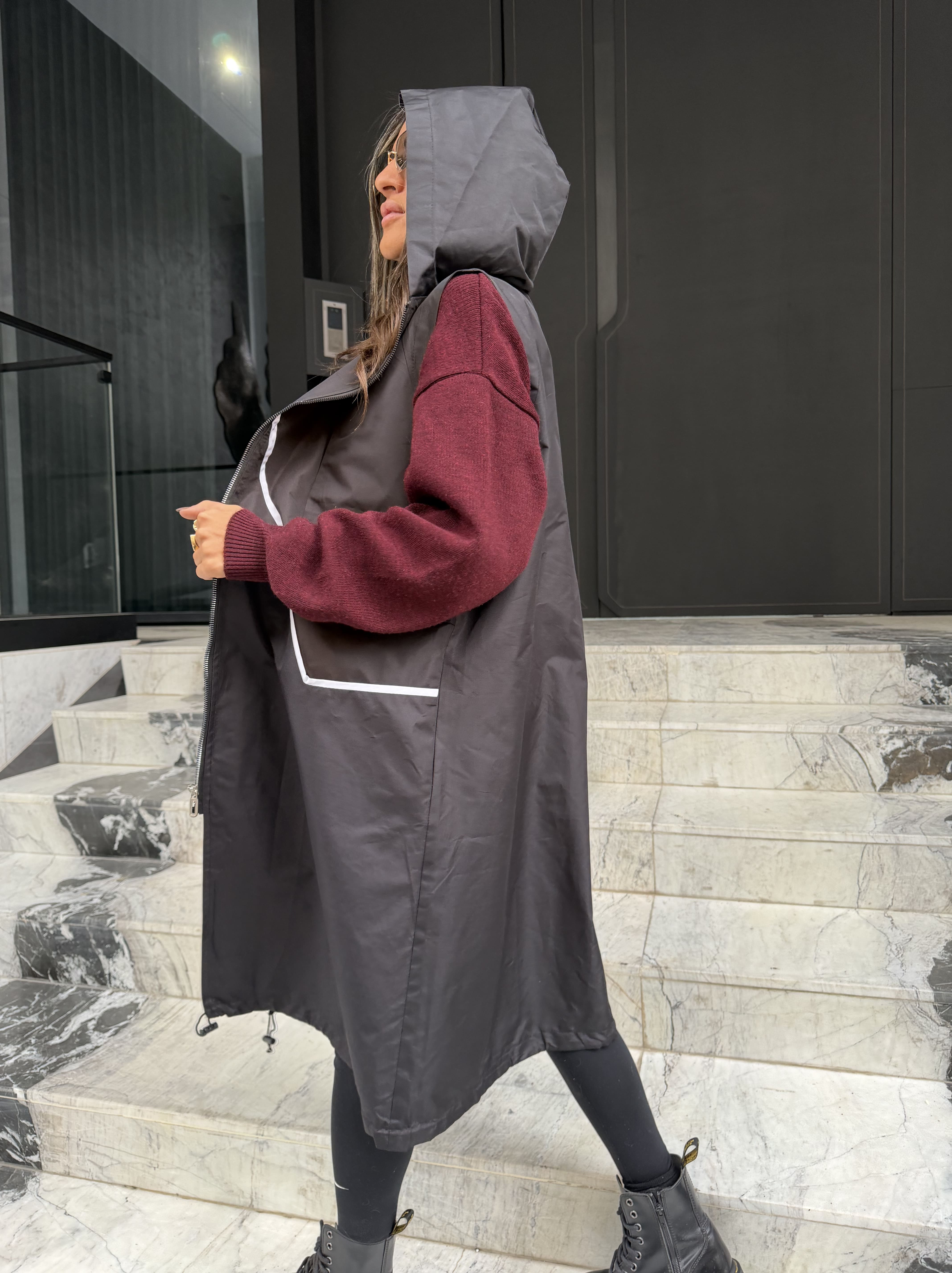 وست ضد آب کلاه‌داره مشکی زنانه آیریا